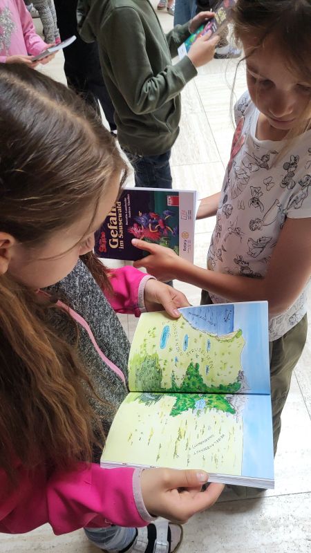 Im Rahmen des Leseförderungsprojekts “LLLL” (Lesen Lernen – Leben Lernen) fand an der Grundschule Sulzberg eine besondere Bücherübergabe statt. Frau Eva Thürwächter, die rotarische Beauftragte des Projekts, und der zukünftige Präsident des Rotary Clubs, Joachim Rath, überreichten den Schülerinnen und Schülern der beiden 3. Klassen jeweils ein Exemplar des Buches “Gefahr im Sausewind”. Die Lehrkräfte der Klassen, Frau Schiele und Herr Riescher, erhielten zudem das dazugehörige Arbeitsbuch,