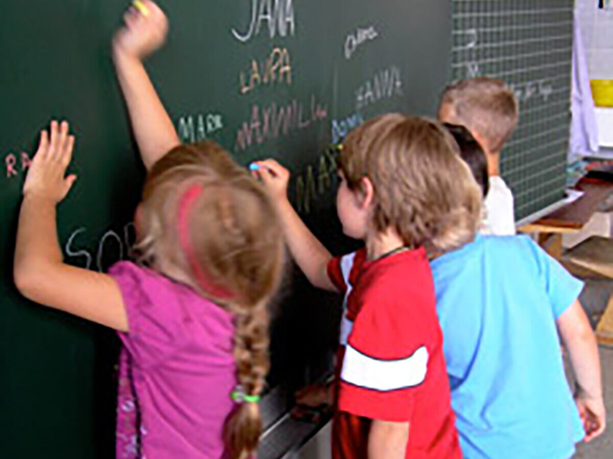 Gegen Ende des Schuljahres kommen die Vorschulkinder in die Schule und dürfen eine Schulstunde erleben.